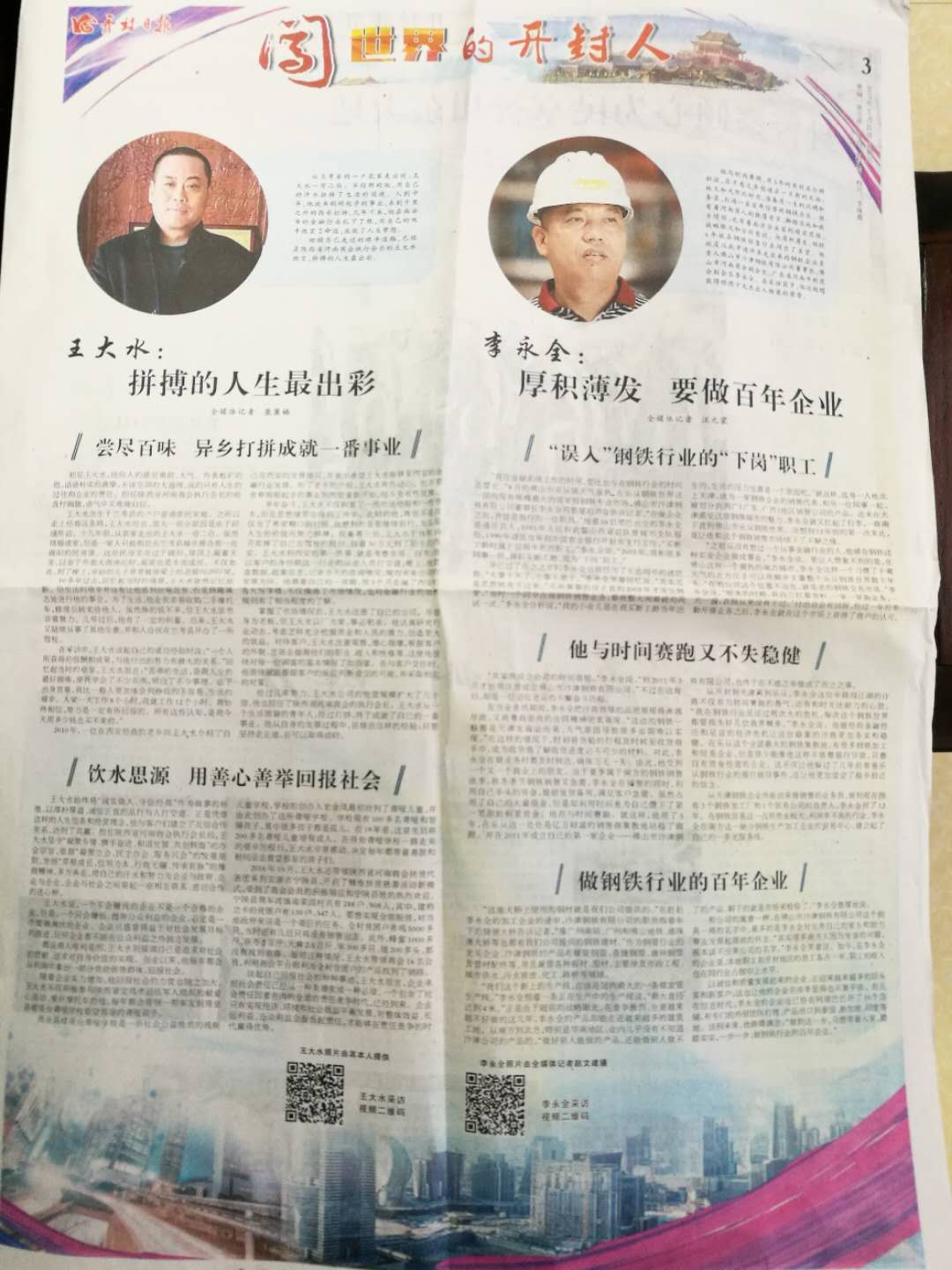 他與時間賽跑,用(yòng)5年的再創業打(dǎ)拚積澱,在不(bú)惑之年創造(zào)出一(yī)片新的天地;他又和光陰比耐(nài)力,準備用一生的沉穩和務實,打造一家百年信譽的鋼鐵企業。他(tā)有著河南商人的敦厚老實、腳踏實(shí)地和故鄉情結,也有著南方企(qǐ)業(yè)家的超(chāo)前思維、戰略眼(yǎn)光(guāng)和合(hé)同意識。他厚積薄發,短短6年就在鋼鐵銷售行業闖出了名堂。他就是從我市通許縣走出來的(de)鋼鐵企業負責人佛山市草莓视频成人鋼鐵有限公(gōng)司董事長、佛山市河南商會副會長、廣東省河南開封(fēng)商會副會長李永全。在采訪前(qián)夕(xī),他(tā)還剛剛(gāng)獲得順德(dé)十大傑出人物獎的榮譽。