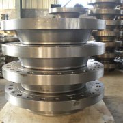 法蘭(Flange),又叫法蘭凸緣盤或突(tū)緣(yuán)。法蘭是軸與軸之間相互連接的(de)零(líng)件,用於管(guǎn)端(duān)之間的連接;也有用在設(shè)備進(jìn)出(chū)口上的法蘭(lán),用於兩個設備之間的連接,如減(jiǎn)速機法蘭。法蘭連接或法蘭接頭(tóu),是指由法蘭、墊片及螺栓三者相互連接作為一組組(zǔ)合密封結構的(de)可拆連接。管道(dào)法蘭係指(zhǐ)管道裝(zhuāng)置中配管用的法蘭,用在設備上(shàng)係指(zhǐ)設備的進(jìn)出口法蘭。法蘭上有孔眼,螺栓使兩法蘭緊連。